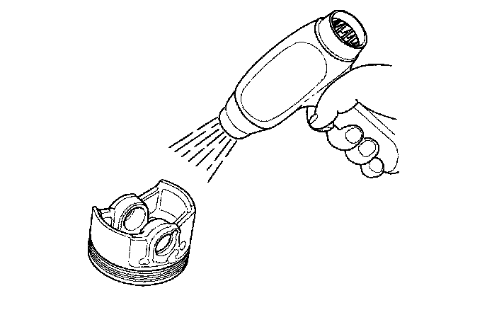 2. Coat the piston pin bore in the piston, the bore in the connecting rod, and the piston pin with engine oil.