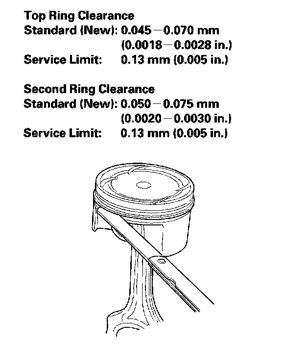 9. After installing a new set of rings, measure the ring-to-groove clearances: