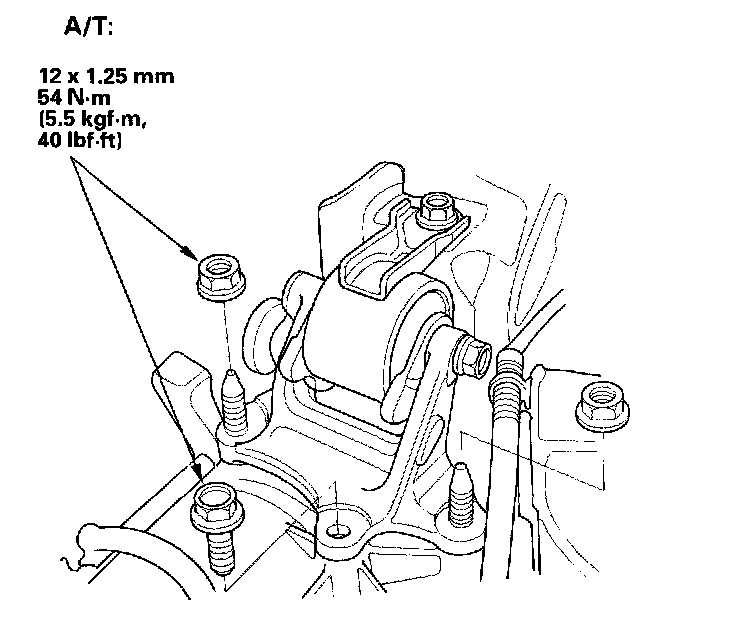 11. Tighten the transmission mount bracket support bolt/nuts.