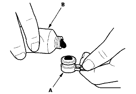 2. Replace the thermal protector (A) with a new one, and apply silicone sealant (B) to the bottom of the thermal protector.
