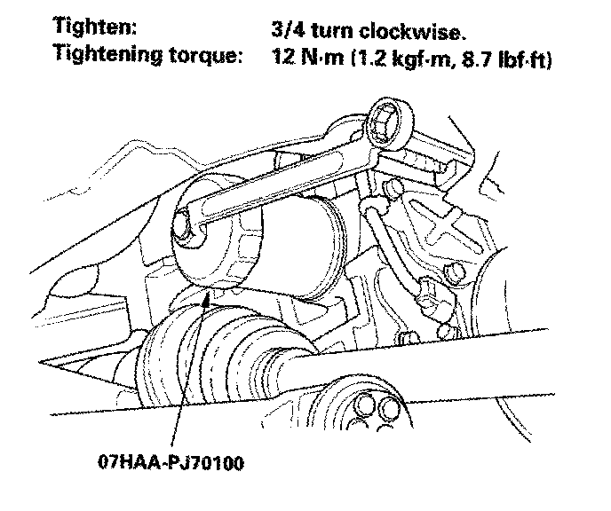4. After the rubber seal seats, tighten the oil filter clockwise with the special tool.