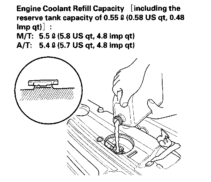 10. Pour Honda All Season Antifreeze/Coolant Type 2 into the radiator up to the base of the filler neck.
