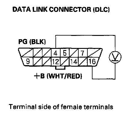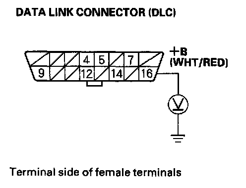 2. Measure voltage between DLC terminals No. 4 and No.16.