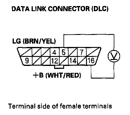 3. Measure voltage between DLC terminals No. 5 and No.16.
