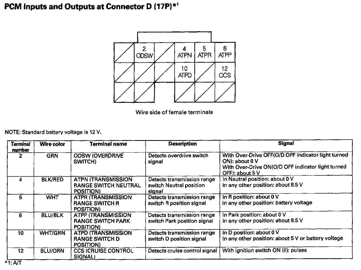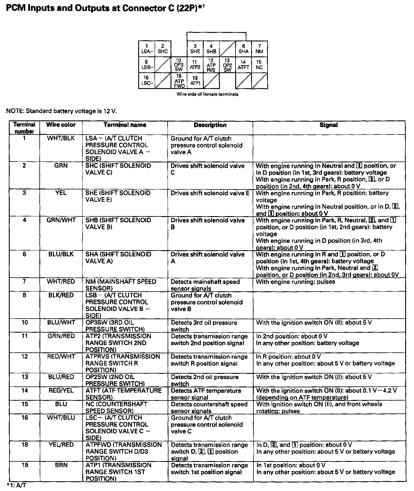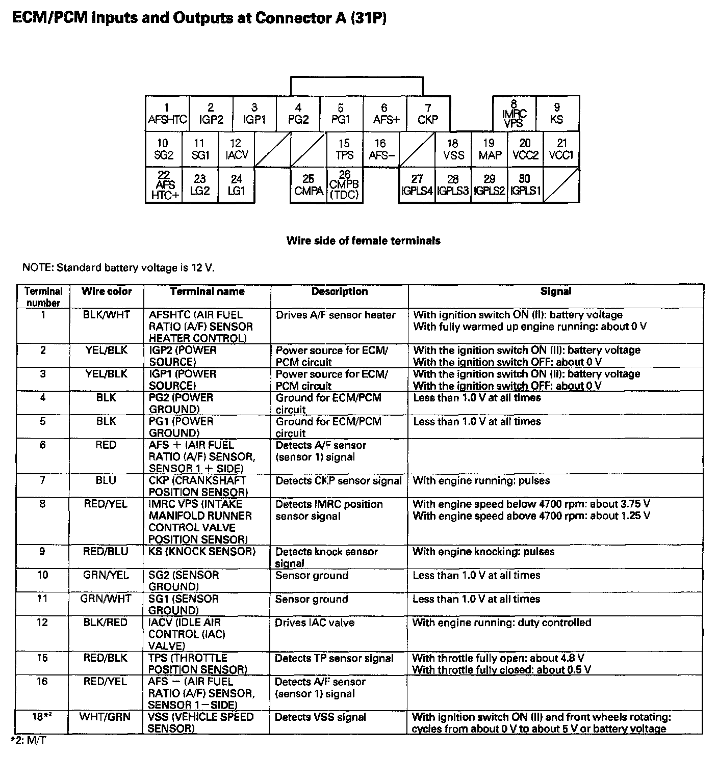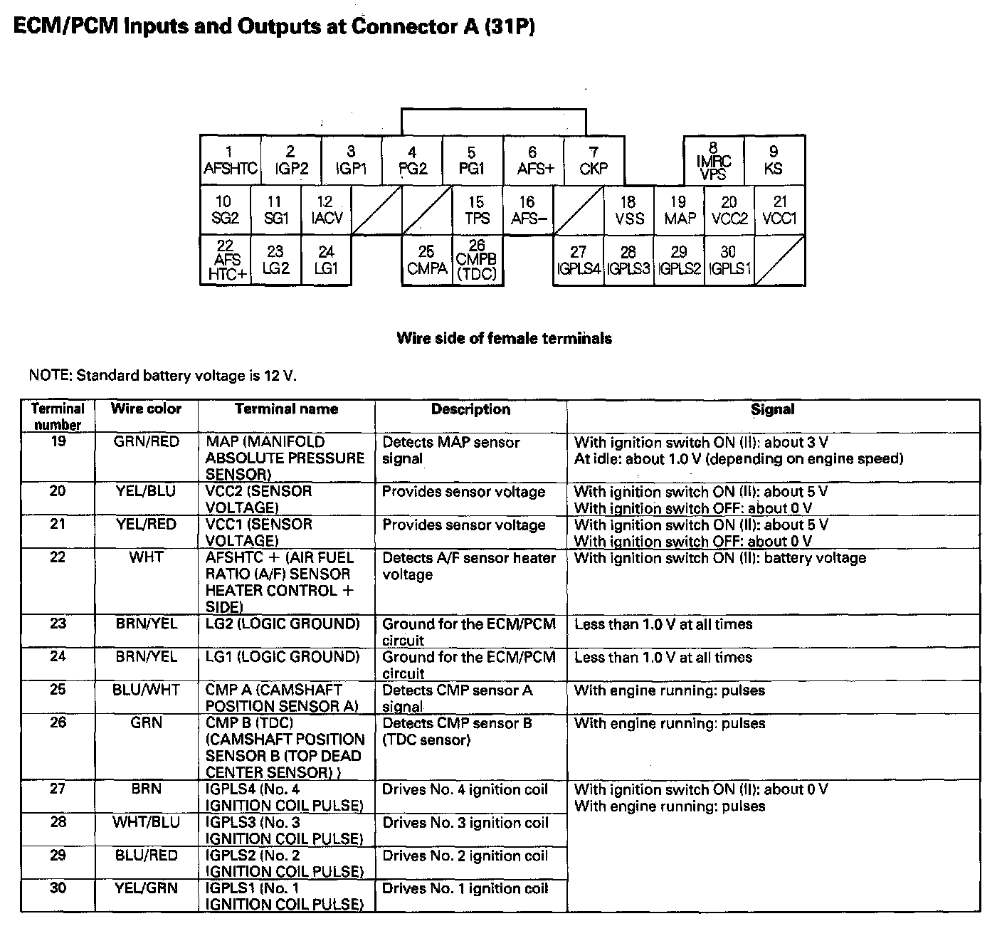 ECM/PCM Inputs and Outputs at Connector A (31P):