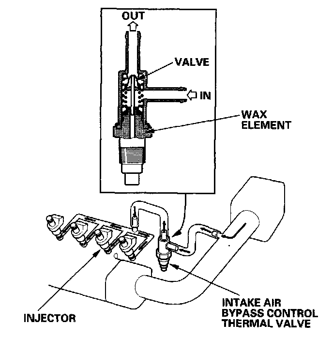 When the engine is running, the intake air bypass control thermal valve sends air to the injector.