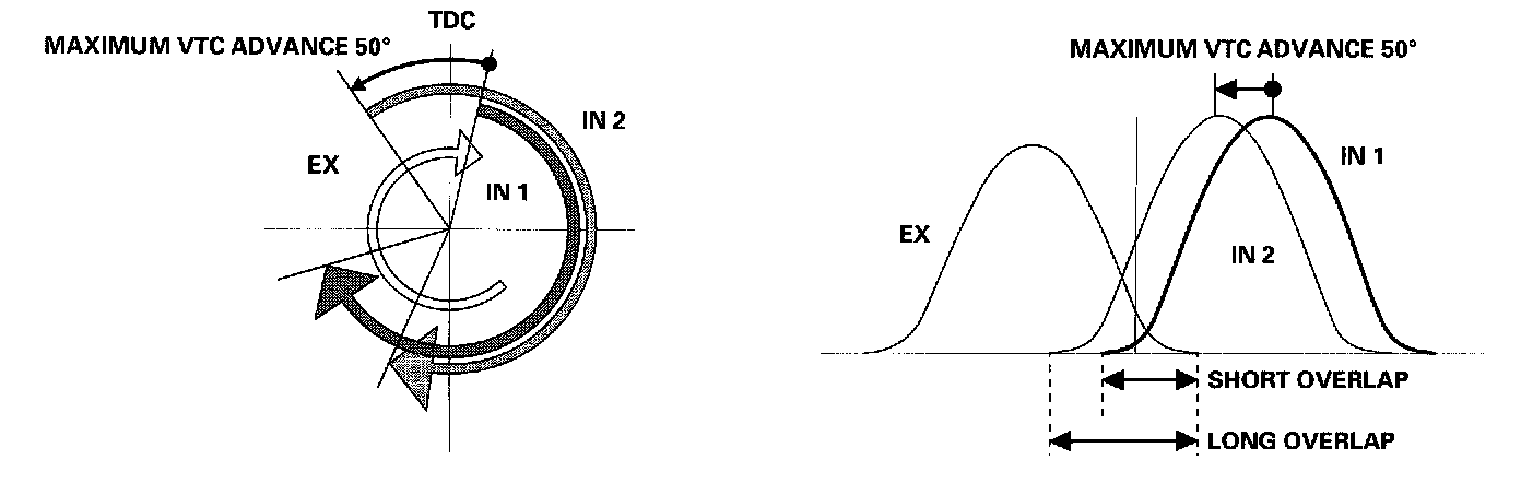 If a malfunction occurs, the VTC system control is disabled and the valve timing is fixed at the fully retarded position.