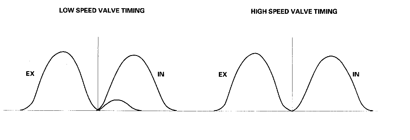 The low lift cam is used at low engine speeds, and the high lift cam is used at high engine speeds.