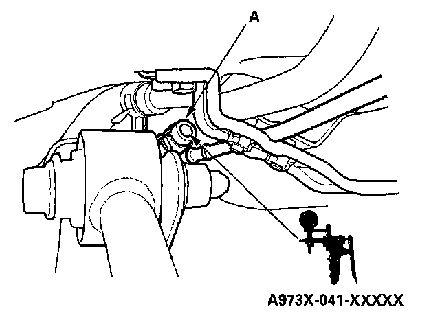 3. Disconnect the fuel tank vapor recirculation tube (A), and connect a vacuum pump to the vapor recirculation tube.