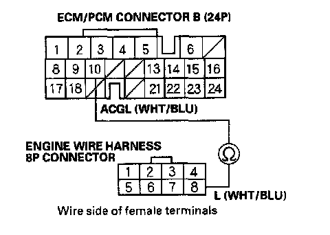 10. Check continuity between the ECM/PCM connector terminal B10 and engine wire harness 8P connector terminal No.8.