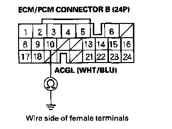 11. Check continuity between the ECM/PCM connector terminal B10 and body ground.