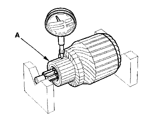 6. Measure the commutator (A) runout.