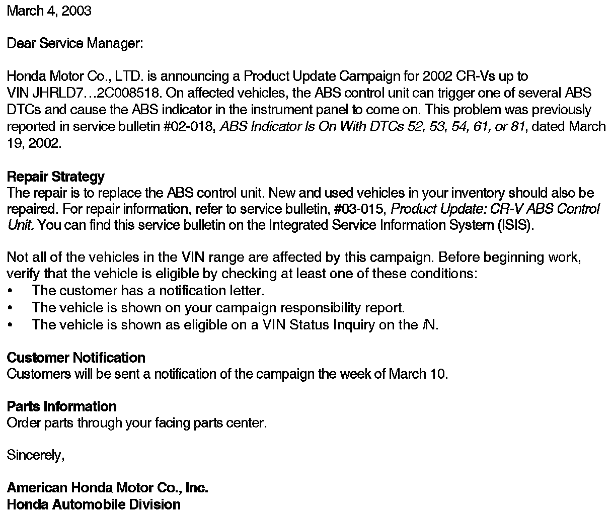 Campaign - ABS Control Unit Replacement