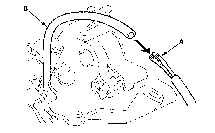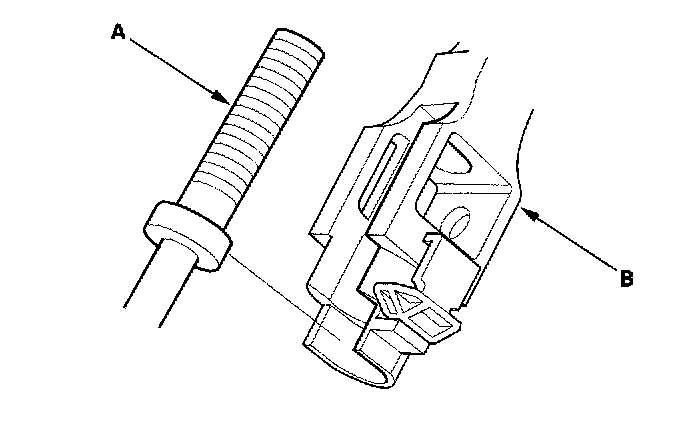 6. Slide the lock tab (A) down on the shift cable and holder (B).
