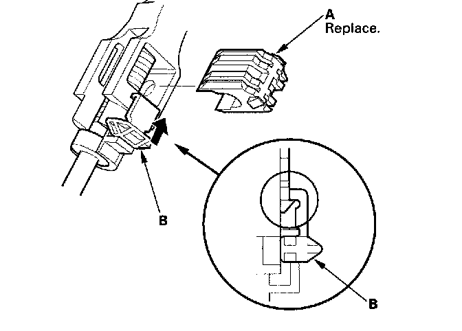 21. Install the O/D switch harness terminals in the new O/D switch. Either harness terminal can be installed in either cavity.