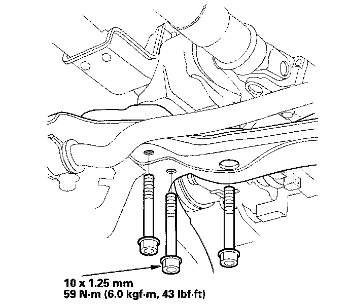 20. Loosely install the new sub-frame mounting bolts.