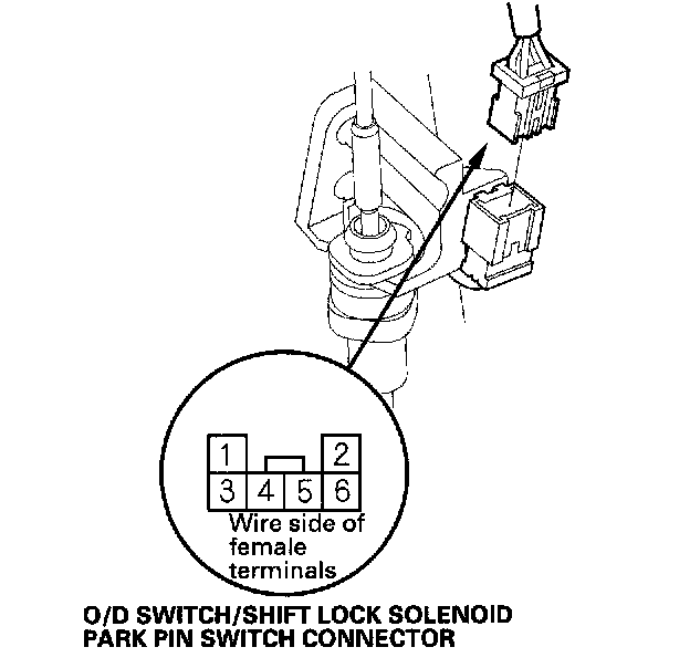 2. Disconnect the O/D switch/shift lock solenoid/park pin switch connector.