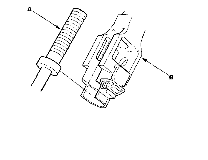 29. Install the shift cable end (A) in the shift cable end holder (B). Keep the shift cable end and end holder free of grease.