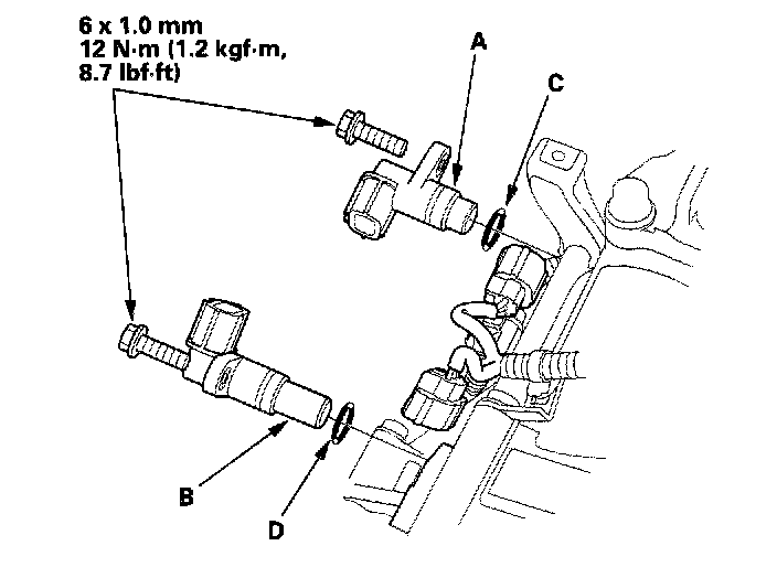 4. Install the new O-ring (D) on the countershaft speed sensor, and install the countershaft speed sensor in the transmission housing.