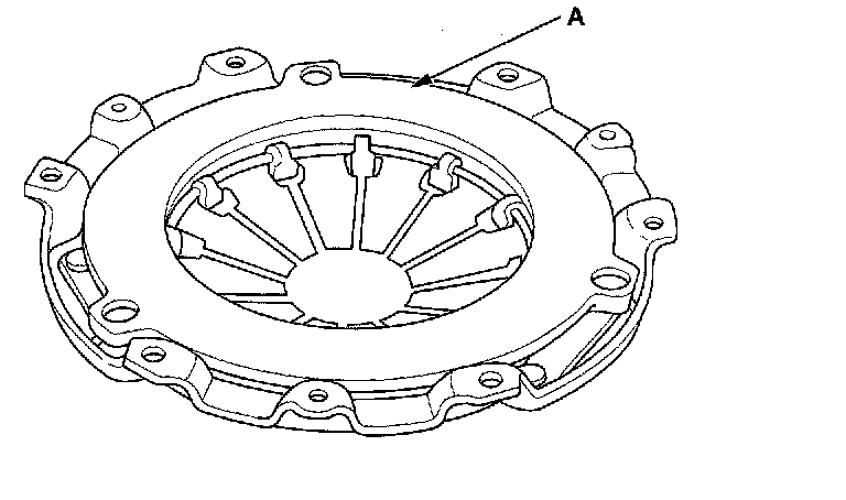 4. Inspect the fingers of the diaphragm spring (A) for wear at the release bearing contact area.
