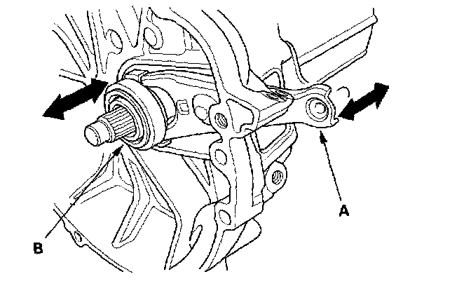 8. Move the release fork (A) right and left to make sure that it fits properly against the release bearing (B) and that the release bearing slides smoothly.