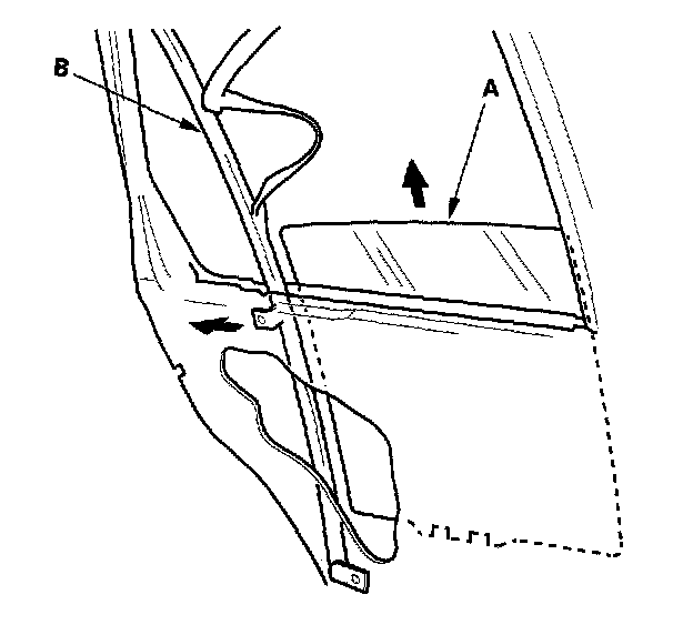 5. Remove the door quarter glass (A) and seal (B) as an assembly from the door.