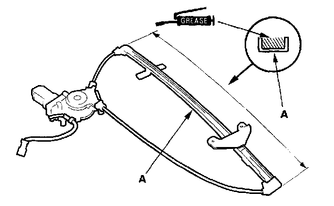 9. Apply multipurpose grease to the sliding surfaces of the regulator (A) where shown.