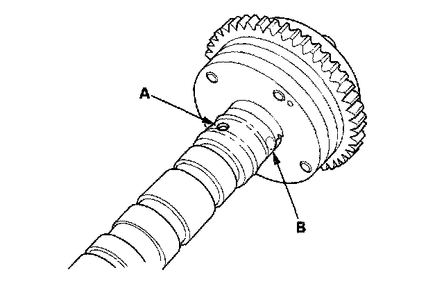 7. Seal the advance holes (A) and retard holes (B) in the No. 1 camshaft journal with tape.