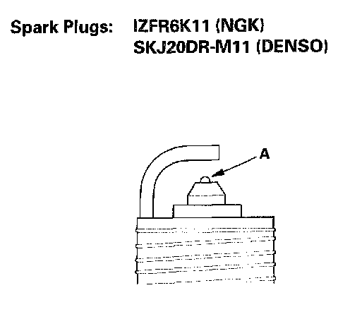 2. Do not adjust the gap of iridium tip plugs (A); replace the spark plug if the gap is out of specification.