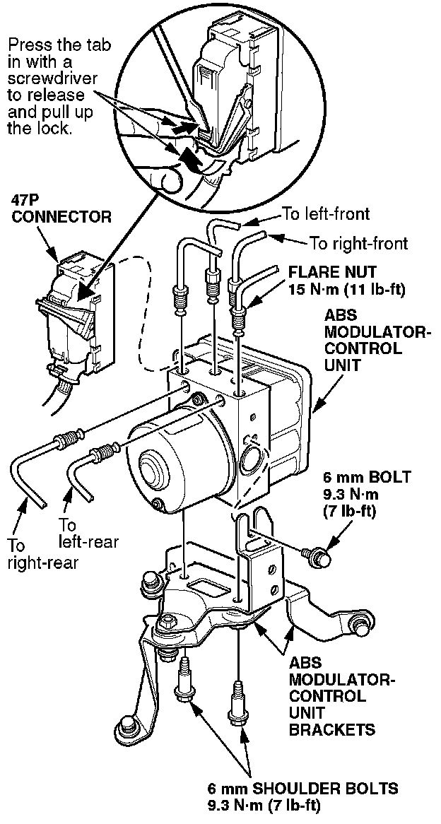 14. Connect the six brake lines. Torque them to 15 N.m (11 lb-ft).