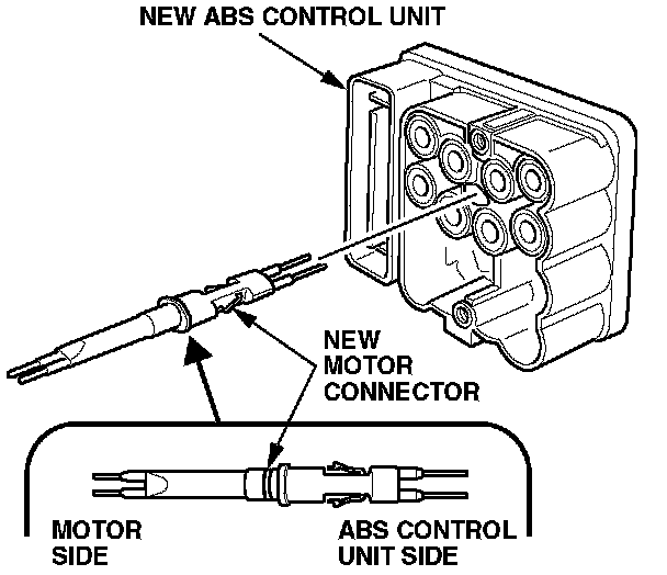 9. Install the new ABS control unit onto the solenoid body with the motor connector going through the body.
