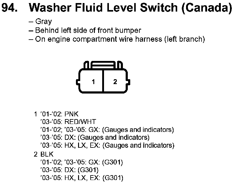 94. Washer Fluid Level Switch (Canada):