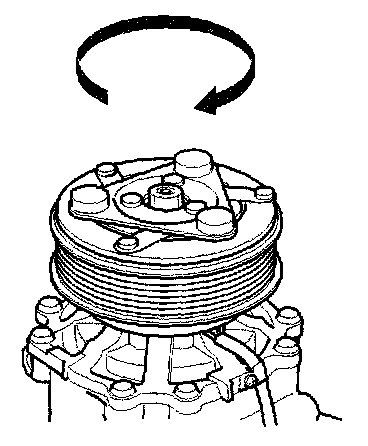 2. Check the rotor pulley bearing play and drag by rotating the rotor pulley by hand. Replace the clutch set with a new one if it is noisy or has excessive play/drag.
