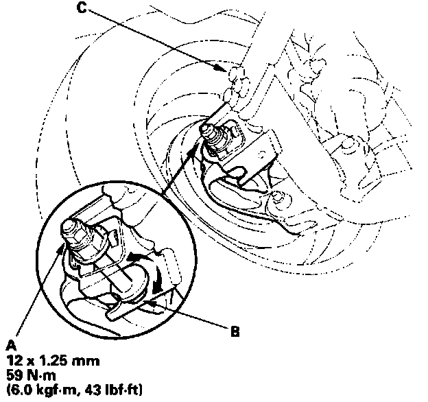 NOTICE: Do not loosen the special bolts (C) on the lower arm to adjust the alignment.