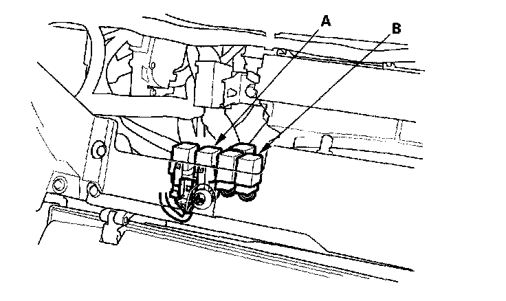 17. Remove the glove box, then remove PGM-FI main relay 1 (A) and the injector relay (B).
