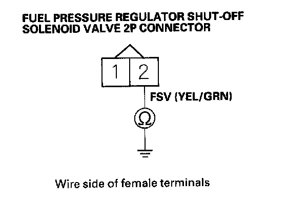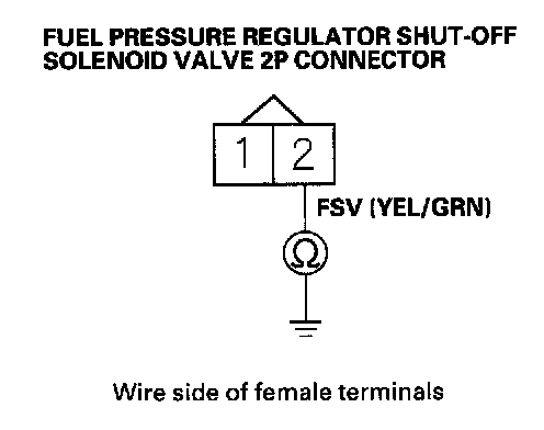 31. Check for continuity between fuel pressure regulator shut-off solenoid valve 2P connector terminal No.2 and body ground.