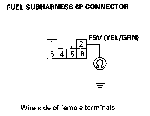 32. Check for continuity between fuel subharness 6P connector terminal No.2 and body ground.