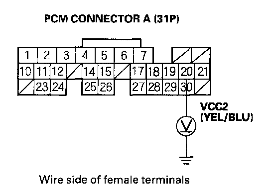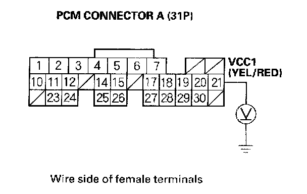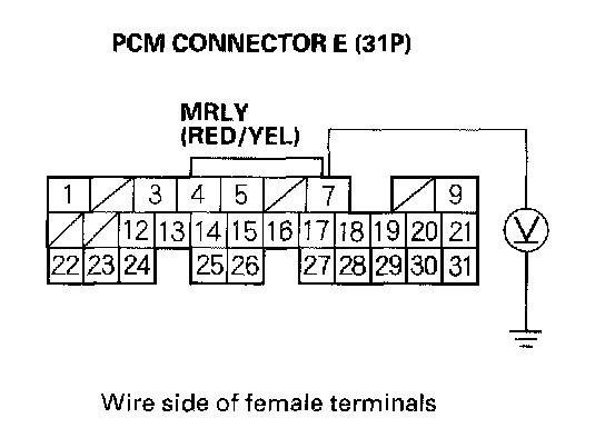 38. Measure voltage between PCM connector terminal E7 and body ground.