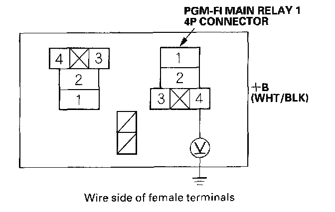 18. Check for continuity between body ground and PGM-FI main relay 1 4P connector terminals No.2 and No.4 individually.
