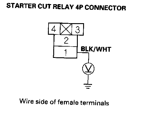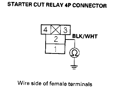 - An open in the wire between starter cut relay 4P connector terminal No. 2 and the ignition switch.