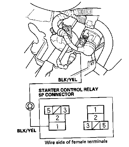 NO - Repair an open in the wire between starter control relay 5P connector terminal No. 1 and the starter.