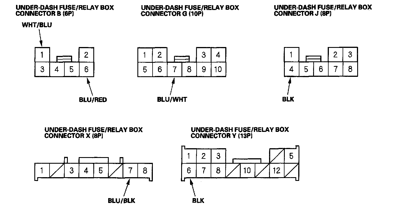 3. Disconnect the under-dash fuse/relay box connectors B, G, J, X and Y.