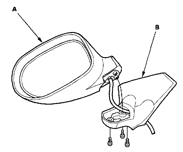 4. Remove the three screws, and separate the mirror housing (A) from the bracket (B).
