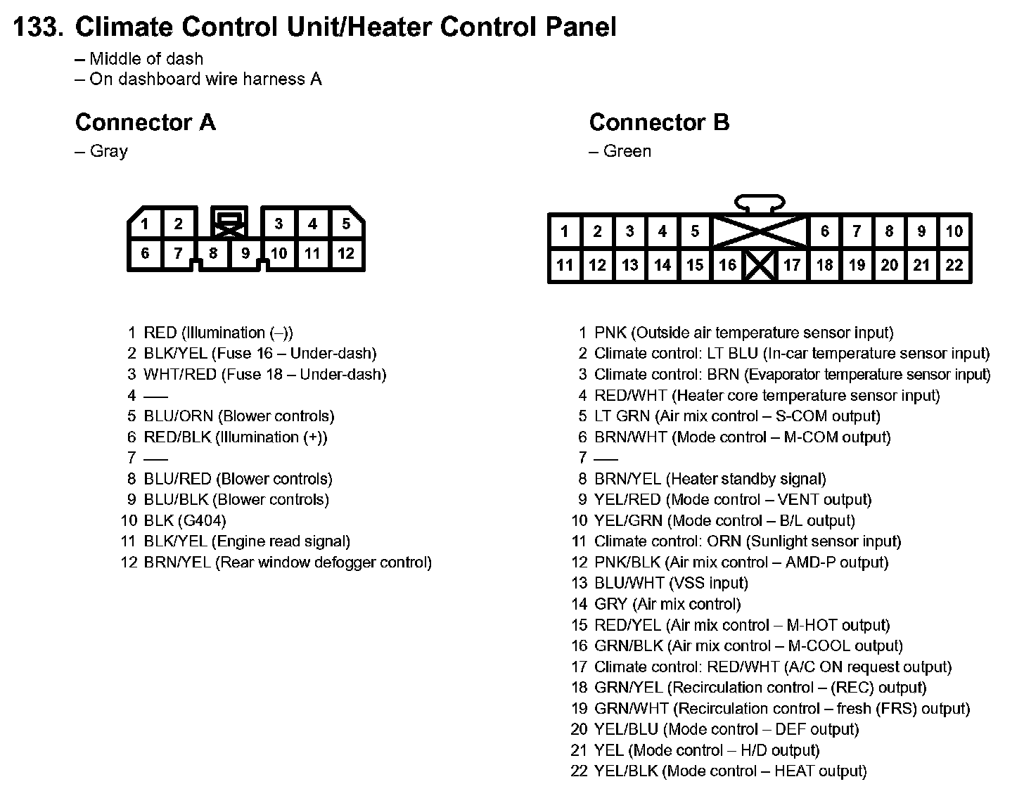 133. Climate Control Unit/Heater Control Panel: