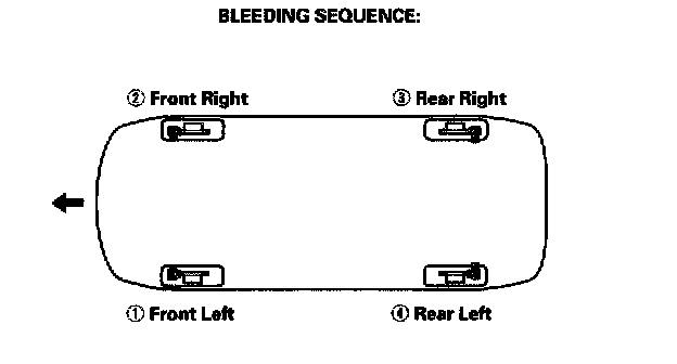 4. Repeat the procedure for each wheel in the sequence shown until air bubbles no longer appear in the fluid.