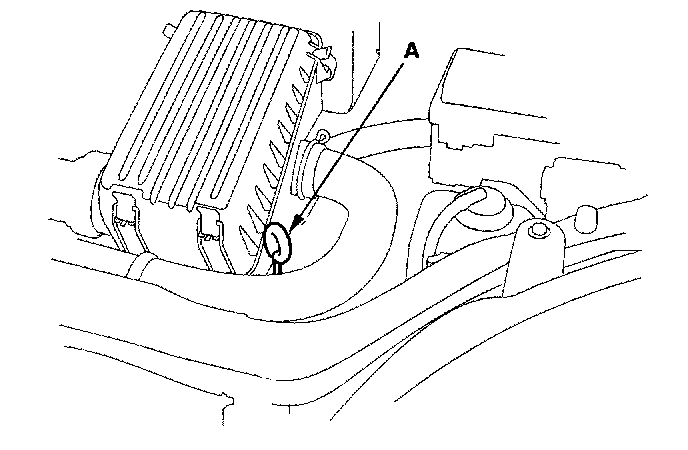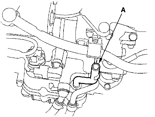 8. Pour the recommended fluid into the opening of the dipstick pipe (A) to bring it to the upper mark. Always use genuine Honda ATF-Z1 Automatic Transmission Fluid (ATF). Using a non-Honda ATF can affect shift quality.