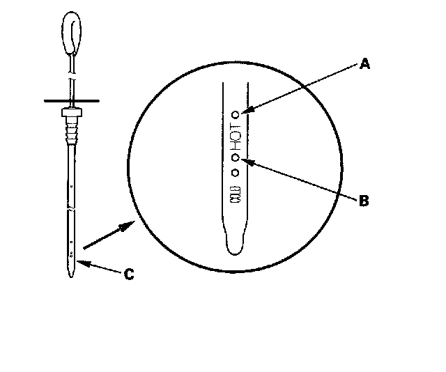 NOTE: Some dipsticks do not have HOT and Cold printed on them.