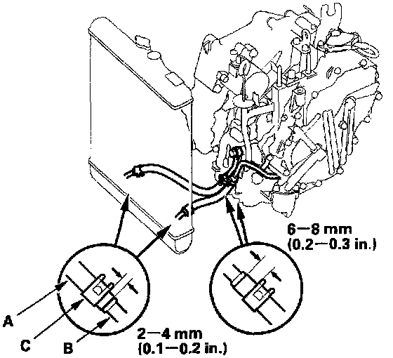 Secure the ATF cooler hoses with the clips (C) in the position shown.