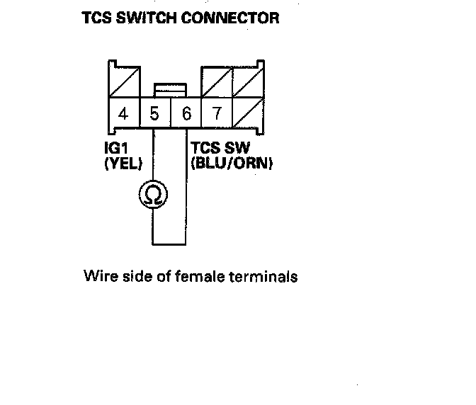 Check for continuity between terminal No. 5 and No. 6. There should be continuity when the TCS switch is pushed.