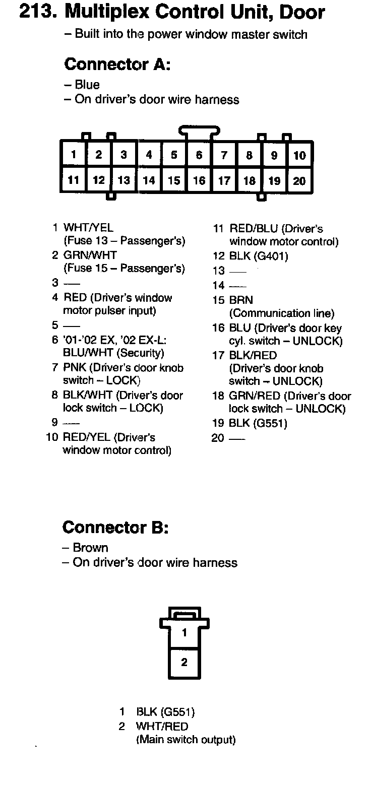 213. Multiplex Control Unit, Door Connector A, B:
